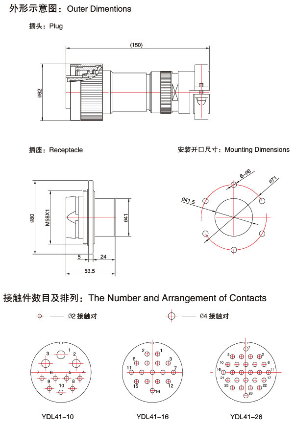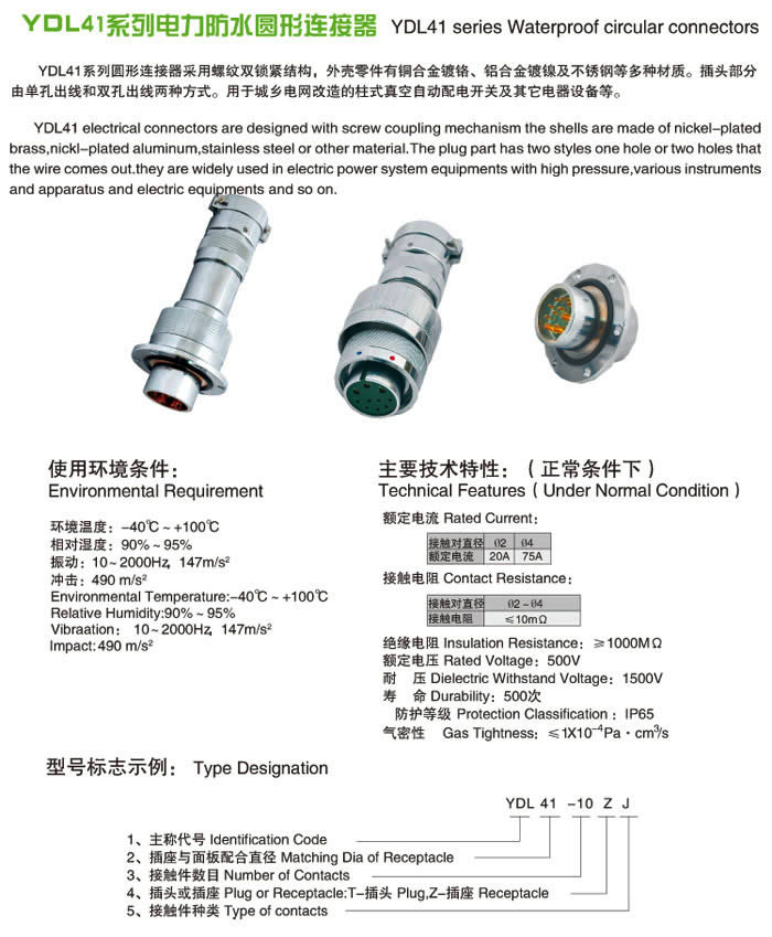 YDL41系列電力專用圓形電連接器,采用螺紋雙鎖緊結(jié)構(gòu),