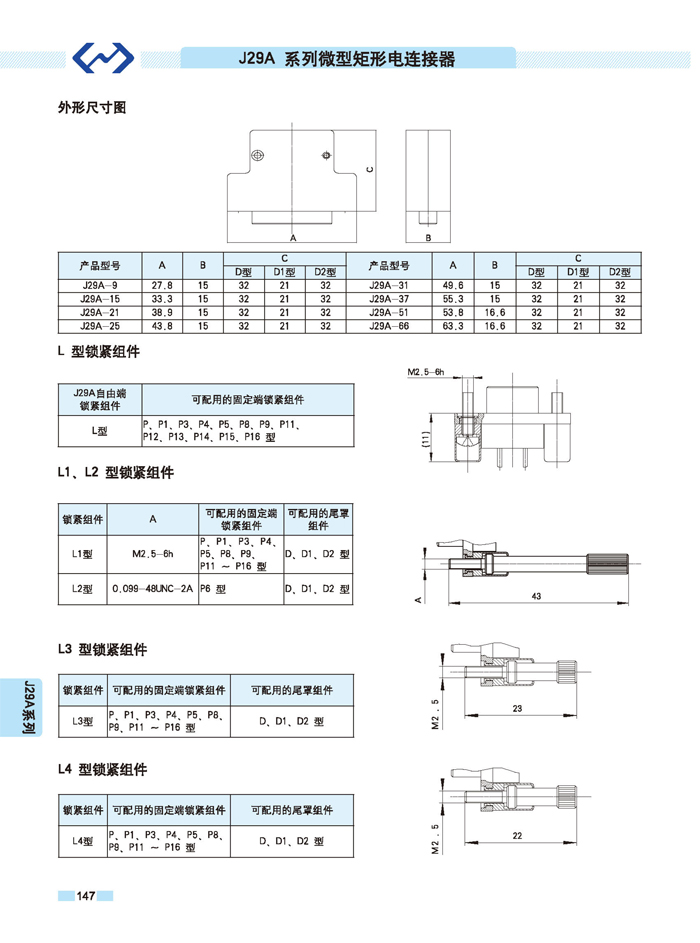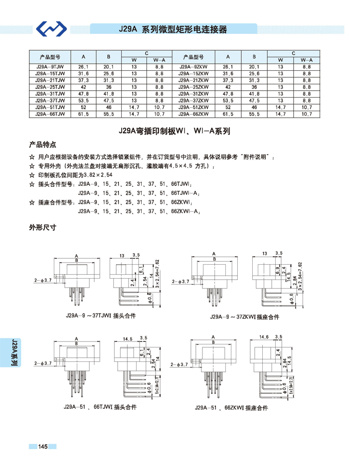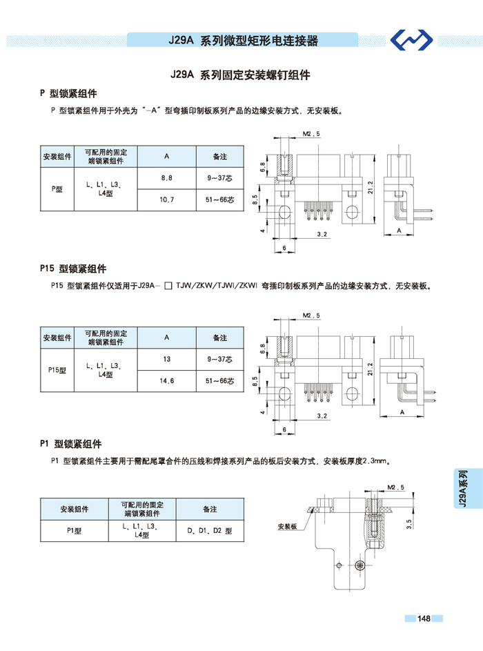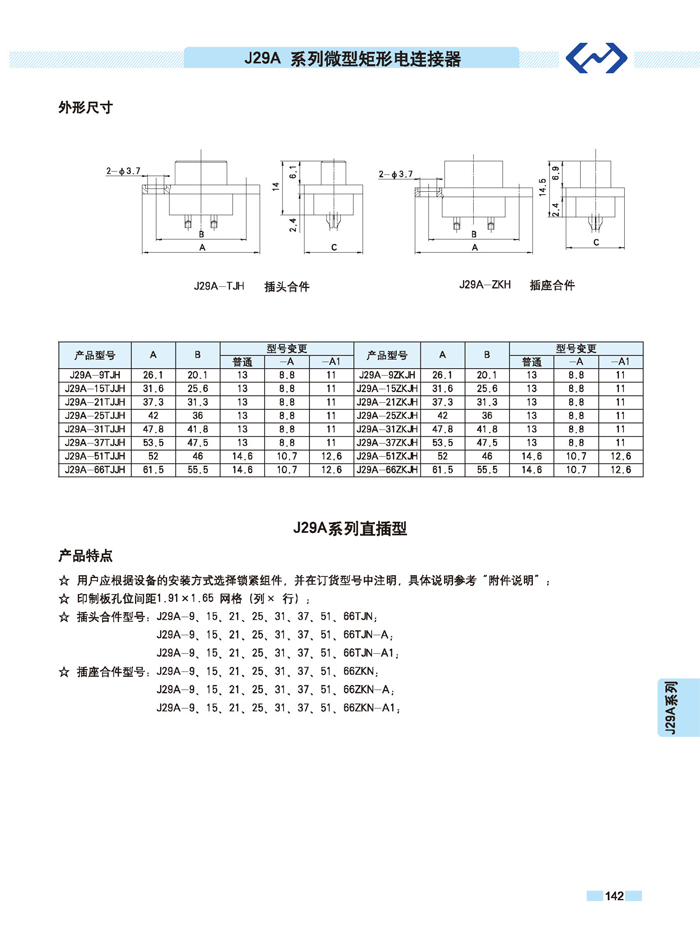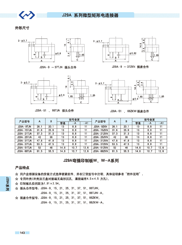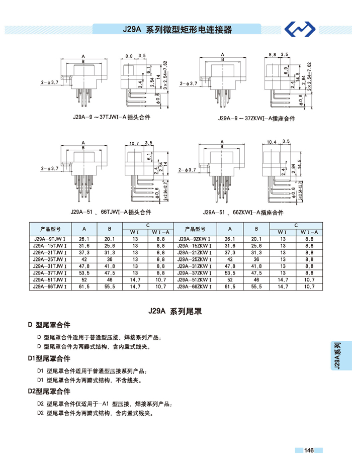 J29A系列微矩形接插件,是J27系列矩形電連接器的升級產(chǎn)品,麻花插針,接點間距1.91mm,排距1.65MM,體積小,重量輕。是微矩形電纜式插頭型號種類多的產(chǎn)品。
