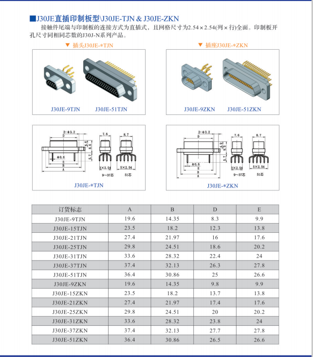 • J30J-15TJ/ZKN直式印制板矩形連接器