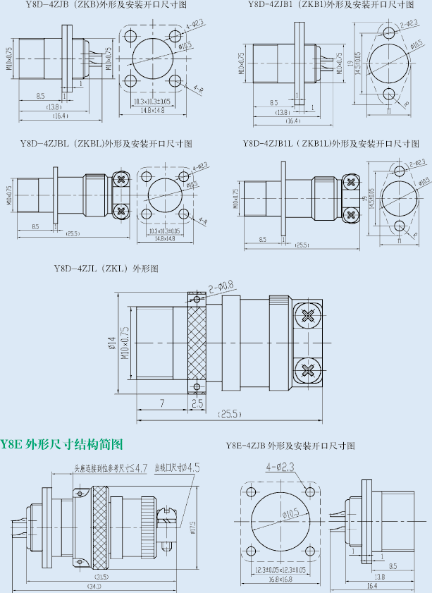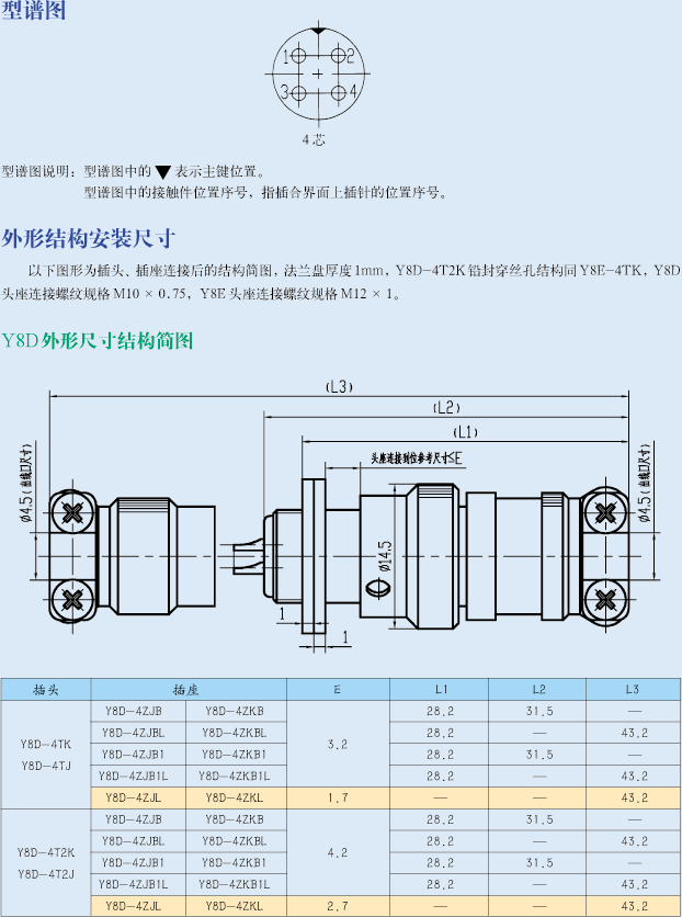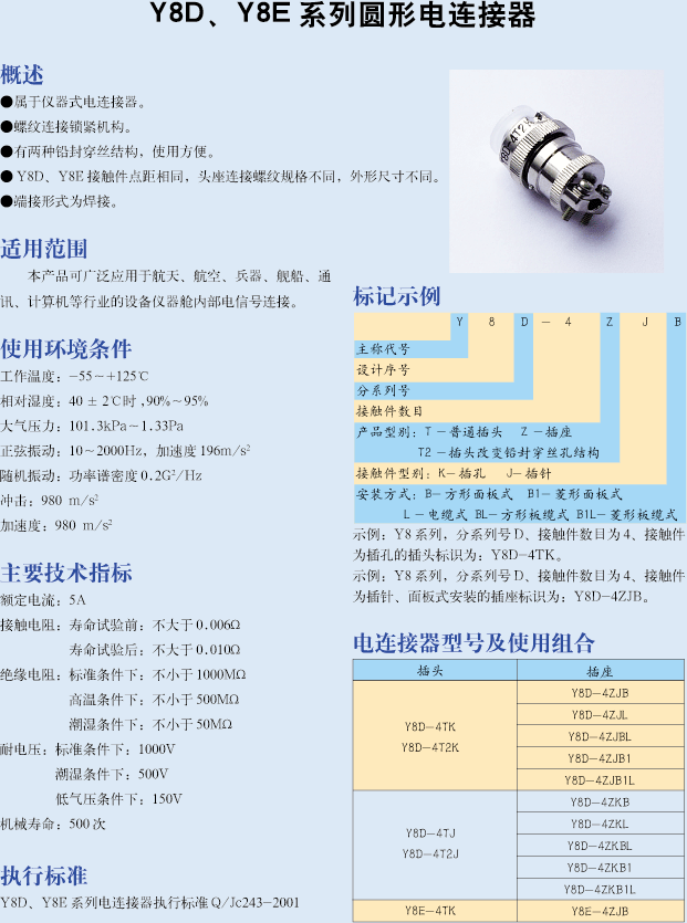 Y8D E系列圓形螺紋航空插頭,螺紋連接鎖緊機構,額定電流為5A,端接形式為焊接。