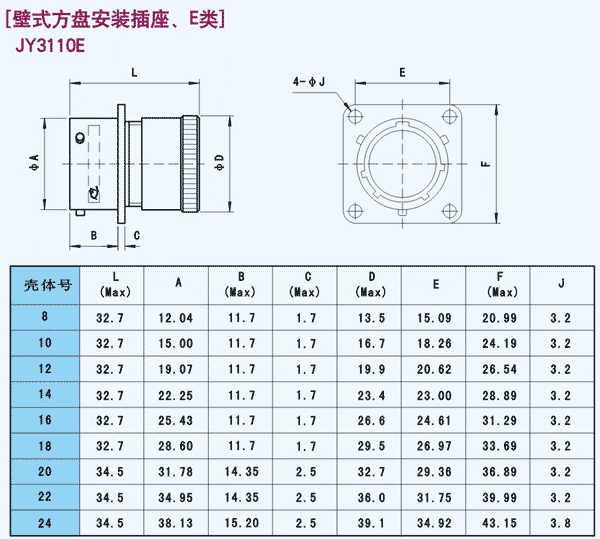 JY3110E14-15SNL高密度航空插座,符合GJB598(MIL-C-26482)I系列,卡口式快速連接,接觸件端接形式為焊接,體積小、密度高,耐環(huán)境好,廣泛適用于各類(lèi)軍用、民用設(shè)備中。