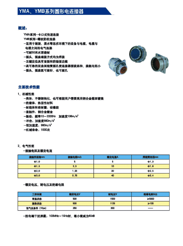 YMA系列航空插頭,,船用抗腐蝕防水電連接器,不銹鋼材料,接口之間都有密封層設計,初步淋雨,大霧不影響使用,一般用于長期潮濕,含鹽量重的環(huán)境。