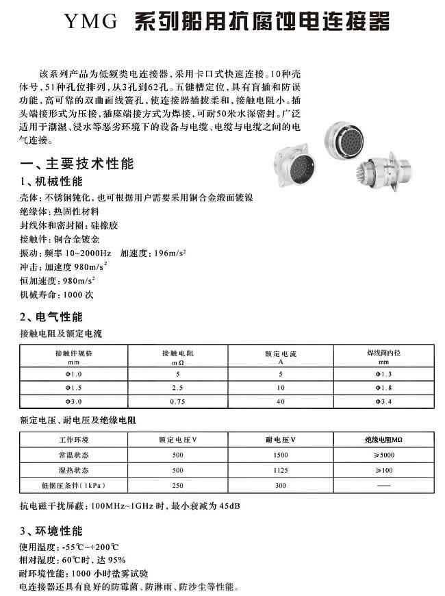 • 武漢 YMG系列船用防水抗腐蝕圓形電連接器