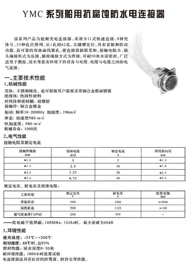 • 遼寧YMC系列船用抗腐蝕防水電連接器