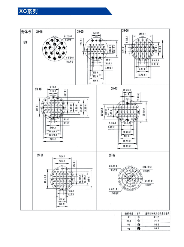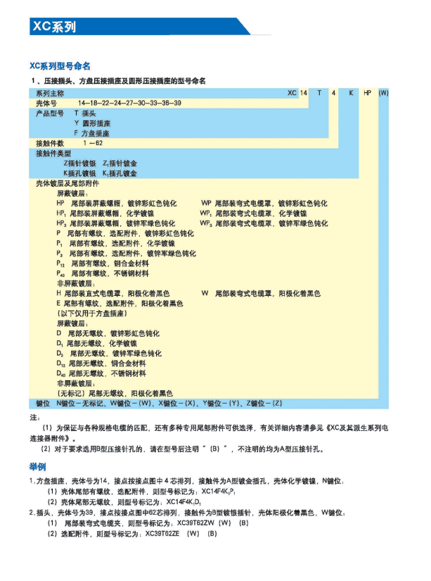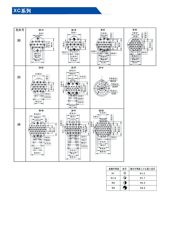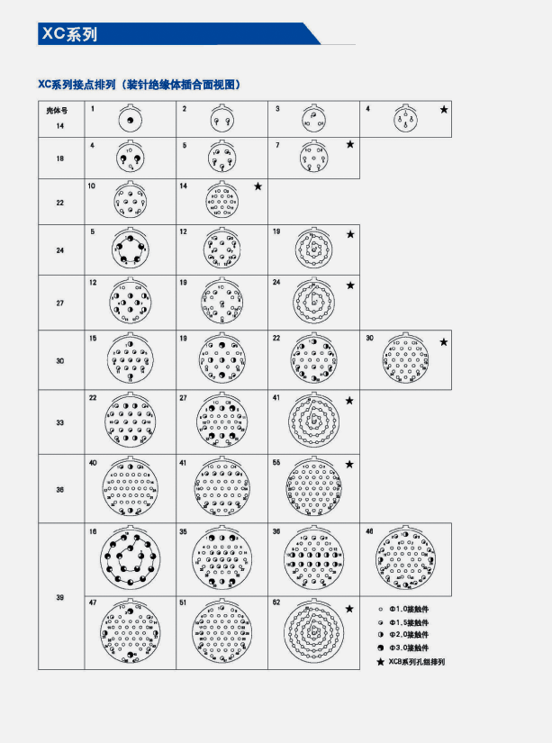 XC系列航空電連接器(航空插頭)為低頻類電連接器。九種殼體號;4種接觸件規(guī)格;32種孔位排列。從1孔到62孔。采用卡口式快速連接系統(tǒng),操作方便,連接可靠,耐振動,抗沖擊。五鍵槽定位,具有盲插和防誤插功能。高可靠的雙曲面線簧孔使連接器插拔柔和,接觸電阻小,工作可靠。插座共有五種結(jié)構(gòu)