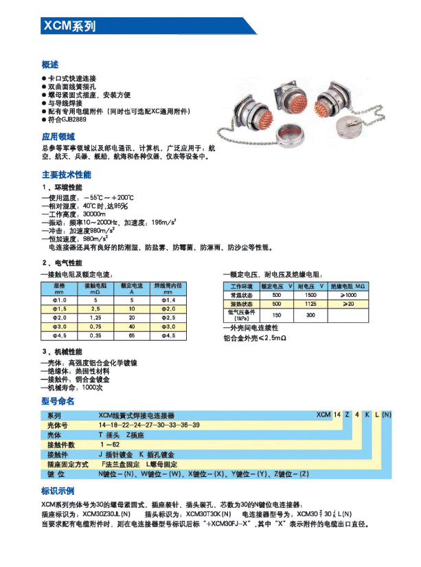 Y55M(XCM)系列螺母拼緊式航空插座,采用卡口式快速連接和分離;雙曲面線簧插孔,插拔柔和;螺母緊固式插座,安裝方便;接觸件為焊接式,配有專用電纜附件;同時也可選配XC通用附件,符合GJB2889標(biāo)準(zhǔn)。廣泛應(yīng)用于航空、航天、兵器、艦船、總參等軍事領(lǐng)域以及郵電通訊、計算機、航海和各種儀器、儀表等設(shè)備中。