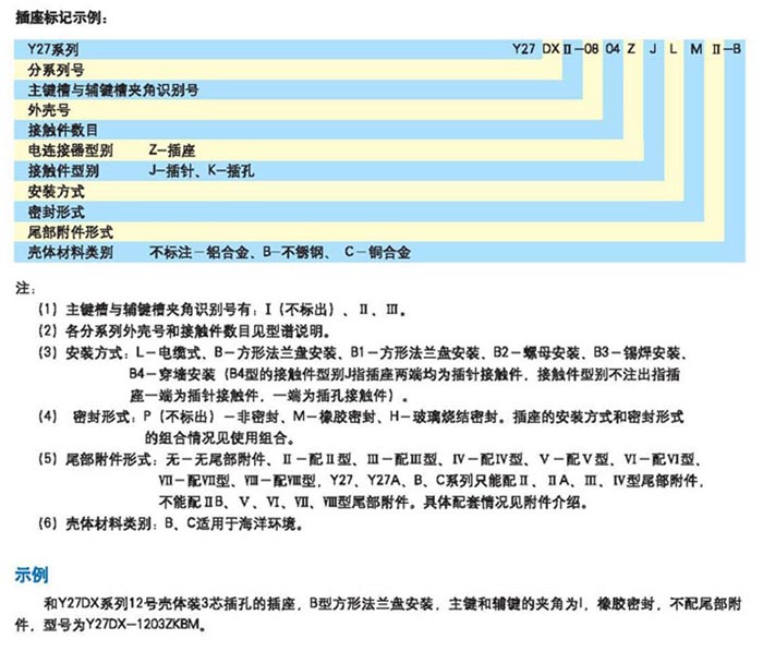 Y27DX圓形推拉式電源接插件,為推/拉式連接結(jié)構(gòu),具有耐壓性能高,額定電流大,功率大等優(yōu)點(diǎn),外形及安裝尺寸與Y50DX系列等同。廣泛應(yīng)用與電源系統(tǒng),大電流電器設(shè)備之間的連接。