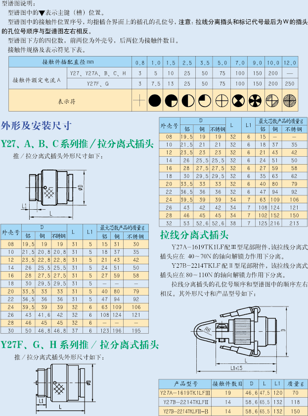 Y27A-0804ZKBM/TJL推拉航空電連接器,是直插式、卡口式鎖緊機(jī)構(gòu)的優(yōu)點為一體的新一代快速插合、分離連接器。具有操作迅速、安全可靠等特點。是圓形電連接器的理想換代產(chǎn)品。無需太大的安裝空間,接線芯鋪與GJB101A相似,區(qū)別連接方式不一樣。符合GJB2905耐環(huán)境推/拉式快速分離圓形電連接器總規(guī)范。