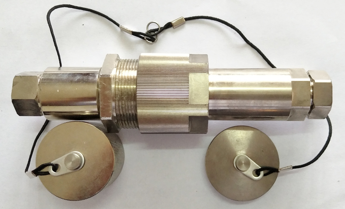 4芯對接式防爆接插件,電流達30A,插頭和插座螺紋連接,用于煤礦,石油測井電氣設(shè)備線路的控制。有國家頒發(fā)的防爆證書。