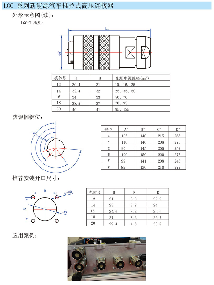 YGC(CT34D)單芯推拉200A電連接器,該連接器有兩種鏈接方式,卡口式和推拉式,接觸件單芯,6mm,8mm,9mm,10mm,12mm粗插針,插座有線鼻子固定,螺絲固定,壓接式固定。電流達80A,125A,150A,200A,250A不等。同一組或同一排有紅、黃、藍、綠、黑區(qū)分,防止誤插,尾部防水防層。
