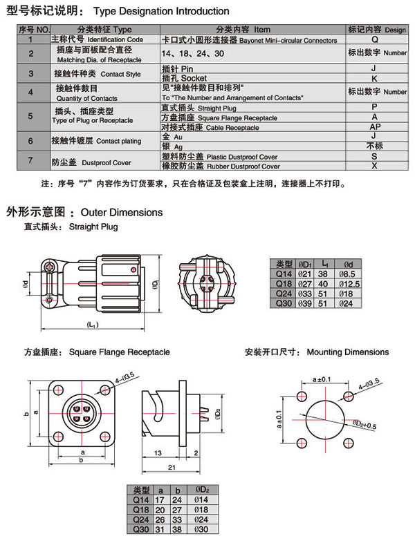 Q型系列圓形電連接器,按電子工業(yè)部標(biāo)準(zhǔn)SJ1744-81制造,產(chǎn)品結(jié)構(gòu)可靠,操作方便。插針、插孔引線采用焊接形式,根據(jù)用戶需要,插頭、插座既可裝針,也可裝孔。該產(chǎn)品具有體積小、重量輕、快速連接、快速分離等特點(diǎn),被廣泛應(yīng)用于儀器儀表、電子設(shè)備間的電氣連接。