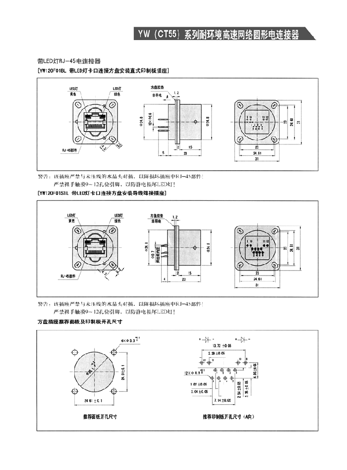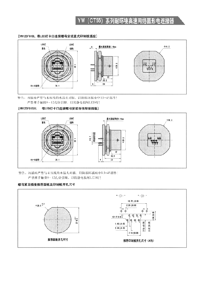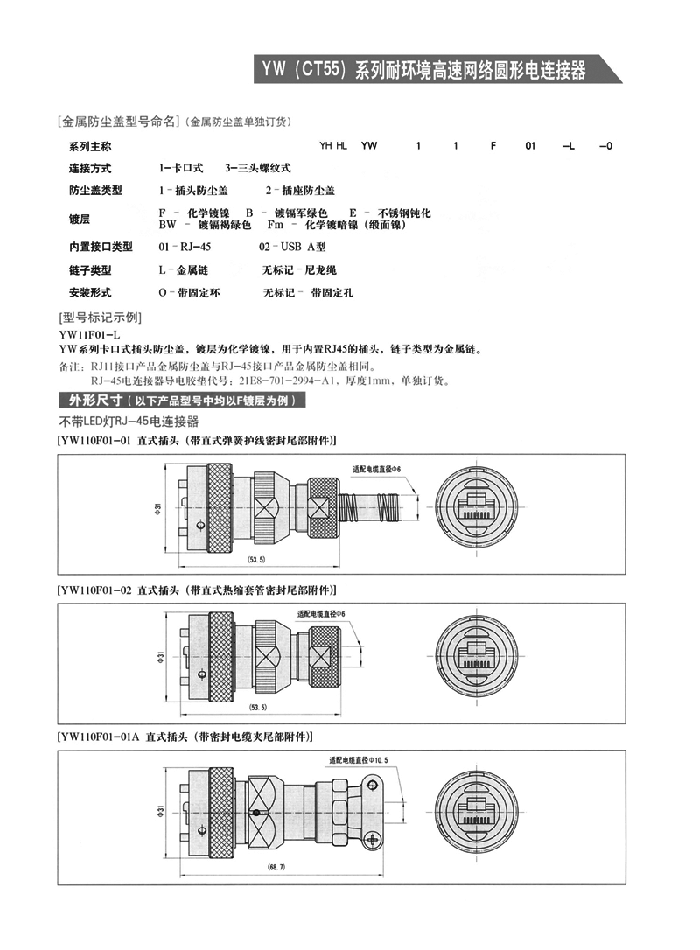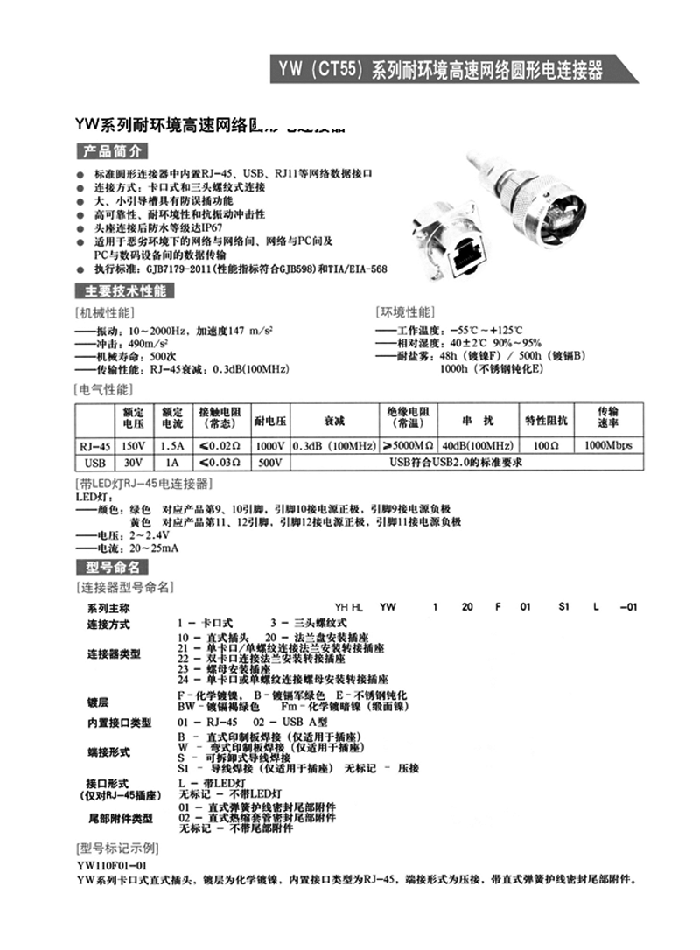 YW系列耐環(huán)境高速網(wǎng)絡圓形電連接器,是將USB網(wǎng)絡數(shù)據(jù)接口集成于標準圓形連接器中,以提高網(wǎng)絡信息傳輸?shù)目煽啃?、耐環(huán)境性和抗振動沖擊性,同時也具有連接快速,安裝及接線方便等優(yōu)點。是一種高可靠的新型網(wǎng)絡連接器,特別適用于惡劣環(huán)境下的網(wǎng)絡與網(wǎng)絡間、網(wǎng)絡與PC間及PC與數(shù)碼設備間的數(shù)據(jù)傳輸。