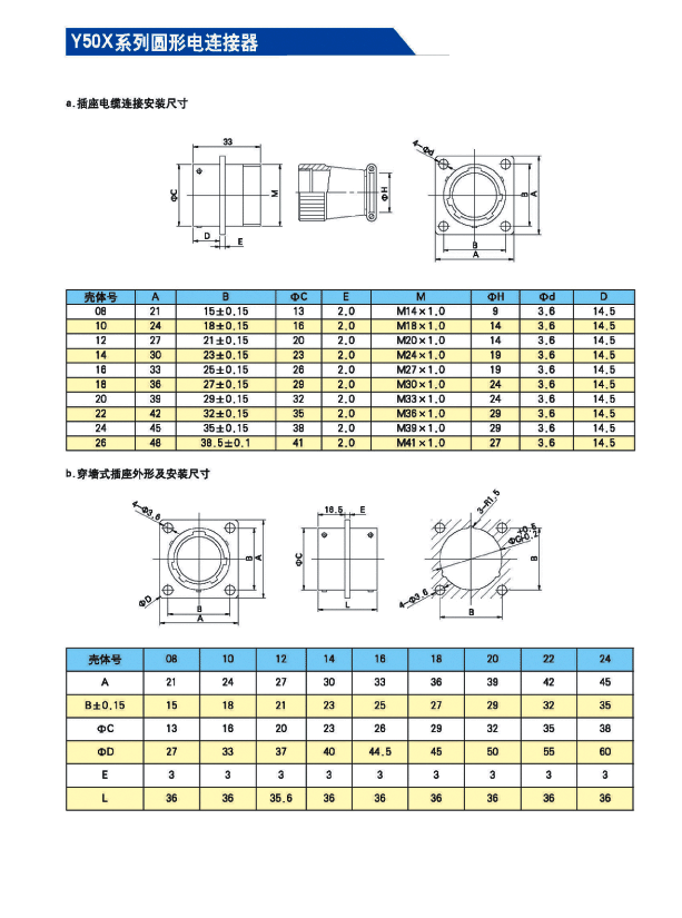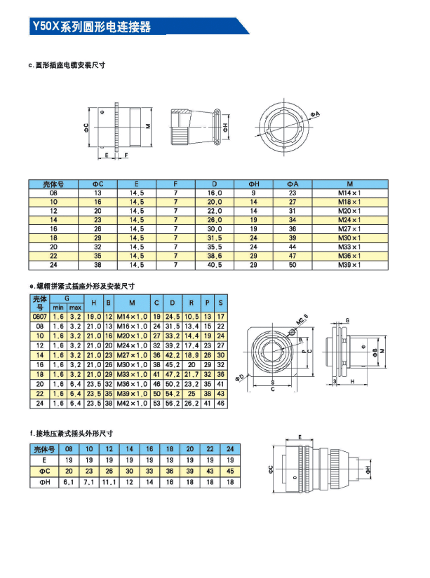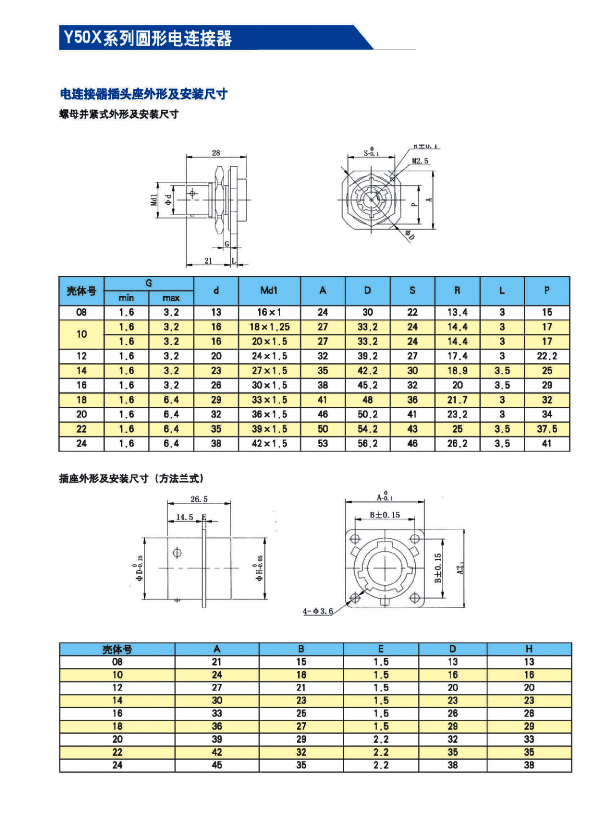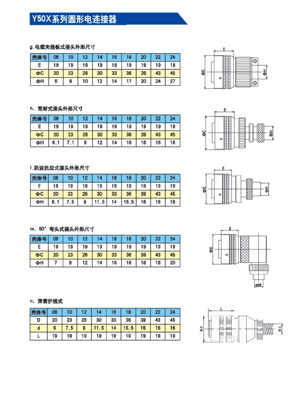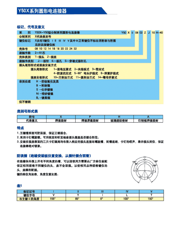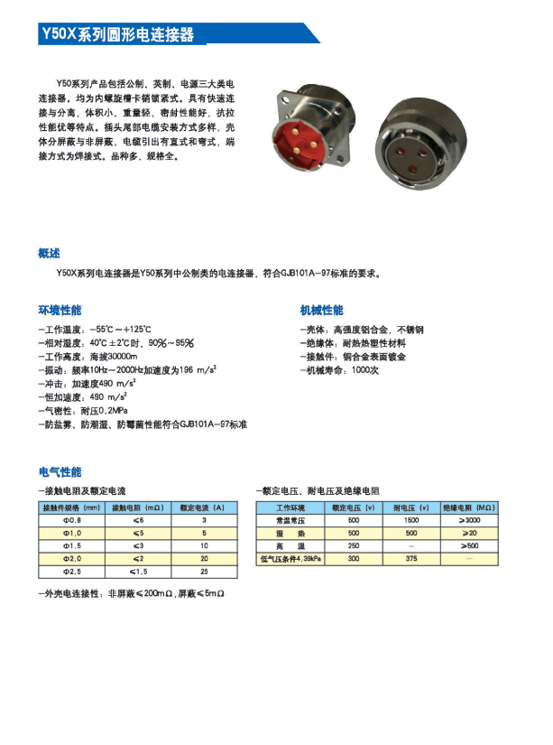 Y50X系列軍用電連接器,包括公制、英制、電源三大類電連接器。均為內螺旋槽卡銷鎖緊式。具有快捷連接與分離,體積小、重量輕,密封性能好,抗拉性能優(yōu)之特點。插頭電纜罩有七種安裝方式,殼體分屏蔽與非屏蔽,電纜引出有直式和彎式,端接方式為焊接式。品種多,規(guī)格全。該產品可根據用戶需求改裝成濾波連接器。 均參照GJB101A—97,GJB598A—96,MIL—C—26482等標準的要求。適用于戰(zhàn)略、戰(zhàn)術系統(tǒng),野外作業(yè)等電訊號、電能的連接。