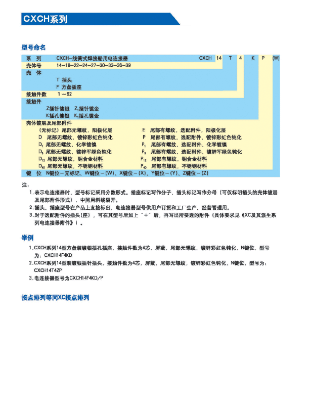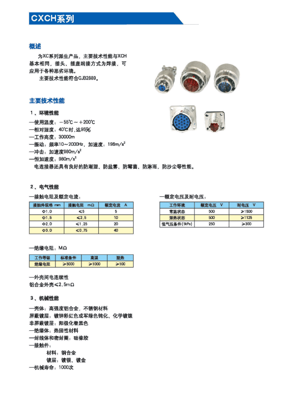 CXCH圓形線簧孔船用航空電連接器,為XC系列派生產品,主要技術性能與XCH航空插頭基本相同,插頭、插座端接方式為焊接,可應用于各種惡劣環(huán)境。CXCH圓形航空插頭主要技術性能符合GJB2889。