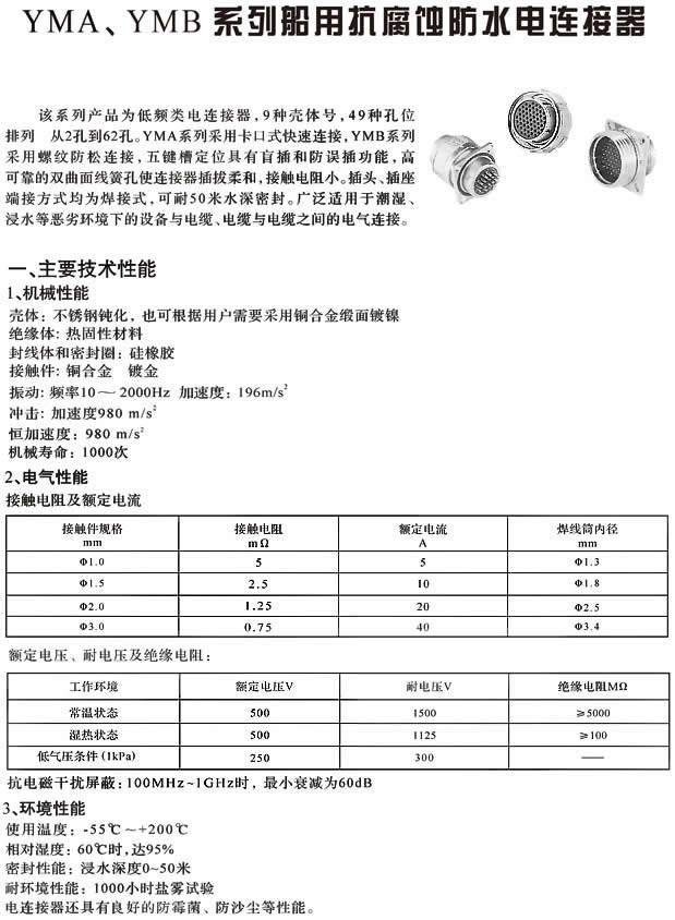 大連YMB系列船用抗腐蝕防水圓形電連接器