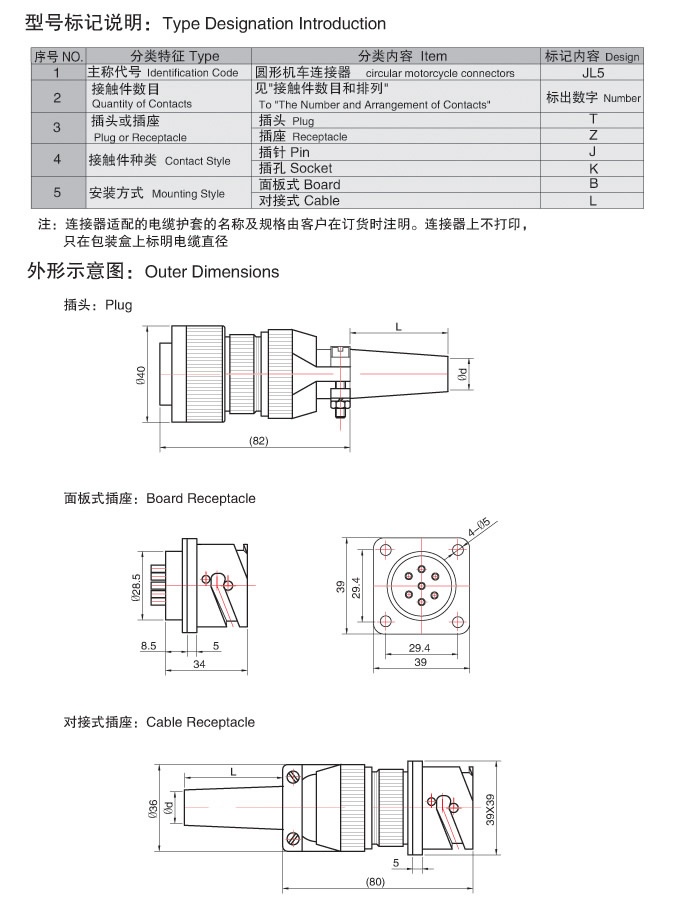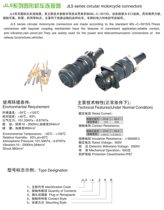 JL5系列(MIL-C-5015G)圓形機車連接器,卡口連接,尾巴具有防水性能,與電纜線采用壓接式,信號傳輸穩(wěn)定,速度快。