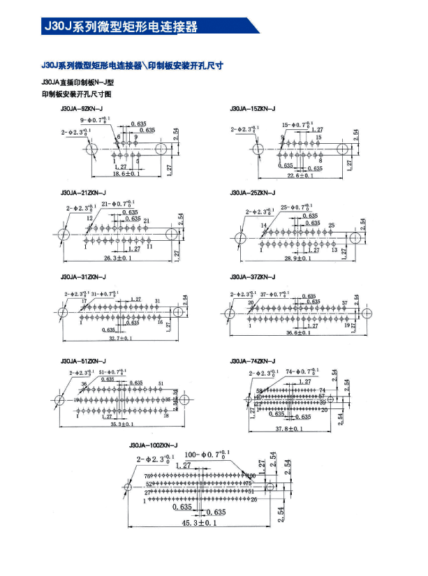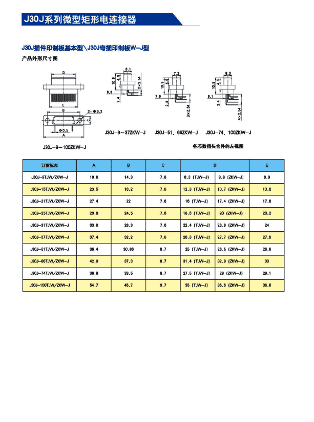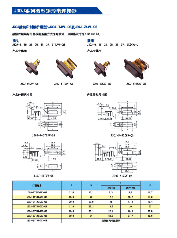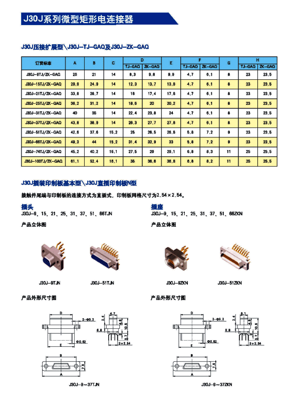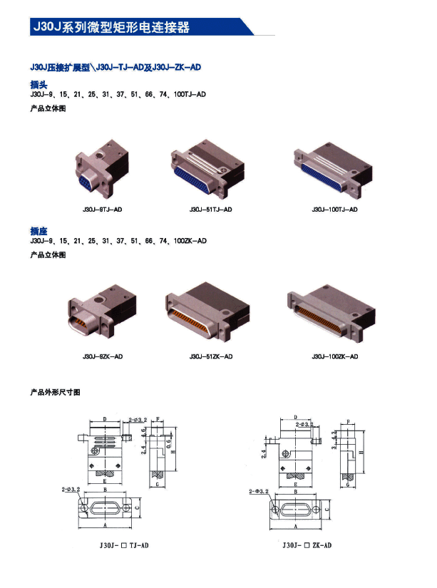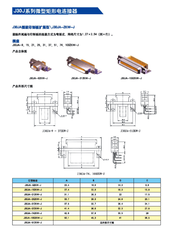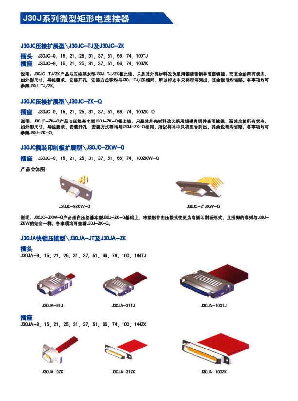 J30J矩形航空插頭符合CJB2446;間距1.27mm;產(chǎn)品采用金屬外殼;包括9芯-100芯等多種規(guī)格;有適用于印制板的尾端變更。
