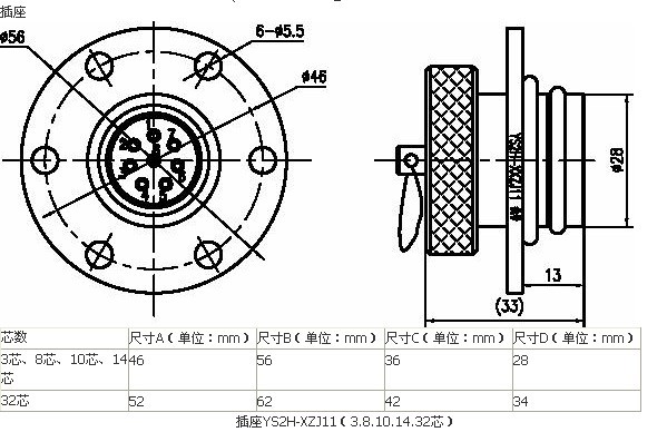 額定電流:MF38芯數(shù)為4、8、19芯,單芯電流40A